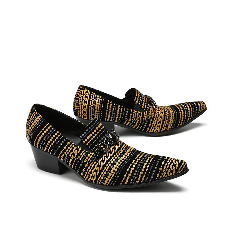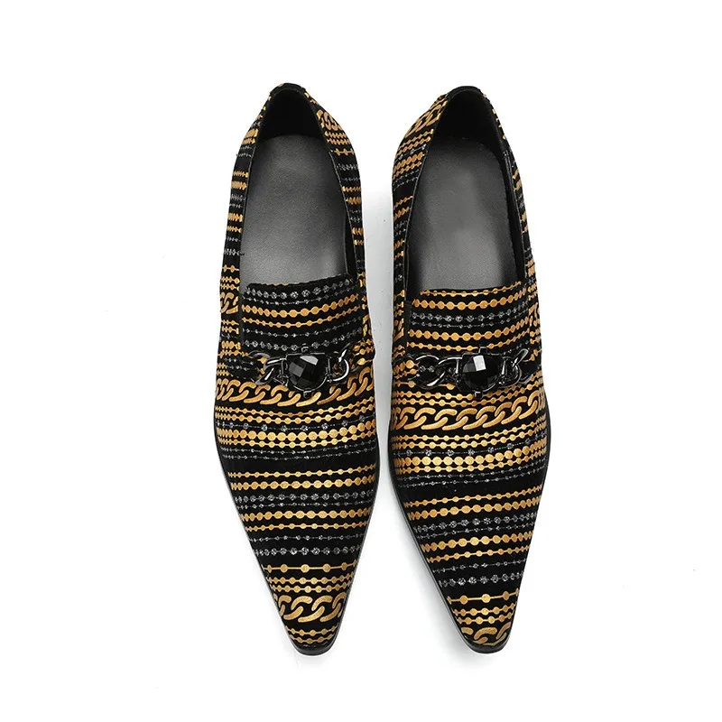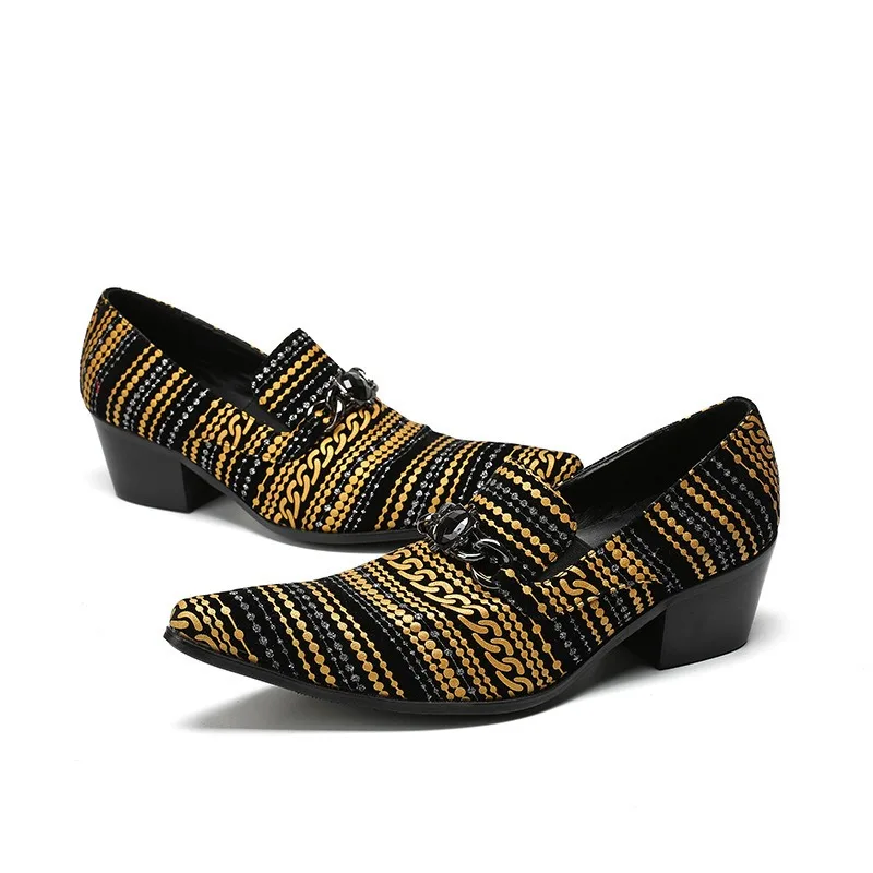 2026 Hot - Selling Trendy African-Print Loafers with Gold Chains - Comfortable Chunky Heel Men Shoes